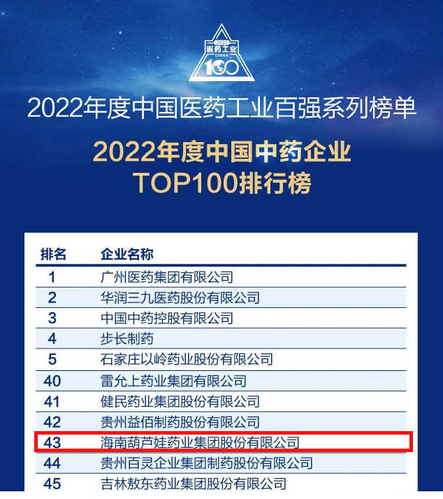 会议期间,一年一度的中国医药工业百强系列榜单隆重揭晓,PA视讯药业集团凭借领先的研发优势和扎实的生产实力以及稳健的市场推广能力,连续第四年成功入选“2022年度中国中药企业TOP100排行榜” ,排名稳步上升至第43位。
